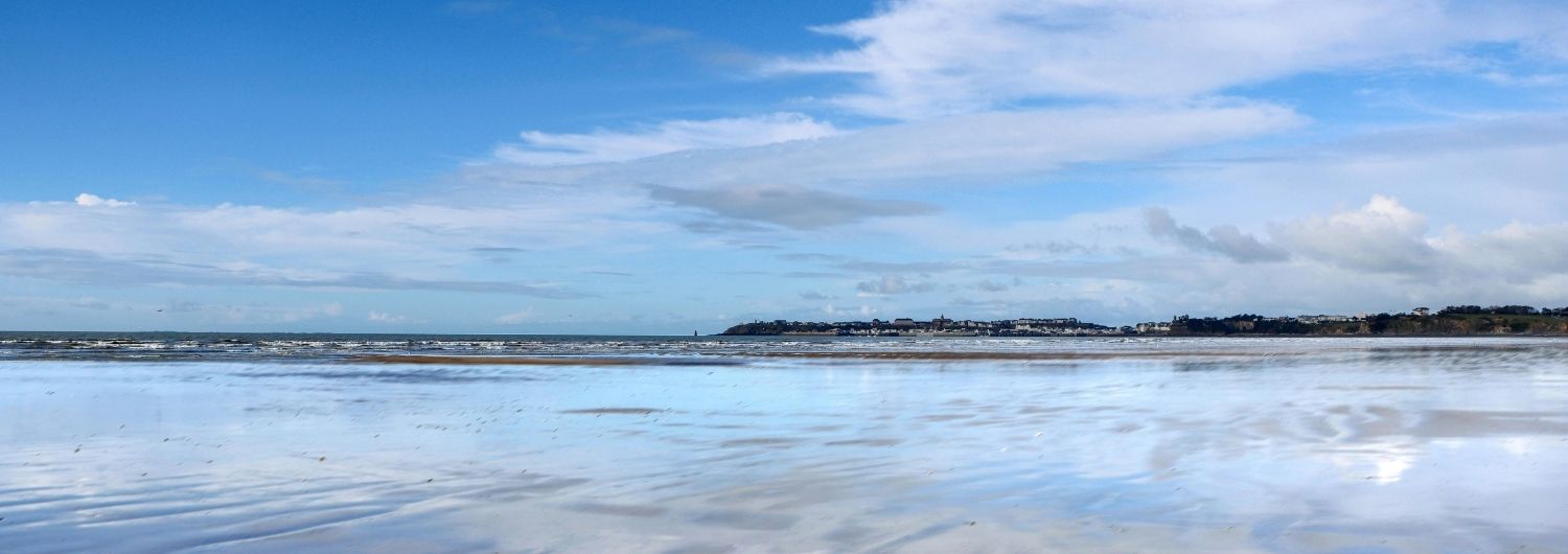 Der Strand von Plat Gousset ist eine echte Postkarte der normannischen Küste und das neuralgische Zentrum des örtlichen Badelebens. Am Fuße der Haute Ville gelegen, bildet er eine breite Sandsichel, die von eleganten Villen und einer Panorama-Promenade eingerahmt wird. Diese angelegte Strandpromenade ermöglicht einen freien Blick auf den Horizont und an klaren Tagen auf das Archipel der Chausey-Inseln.
