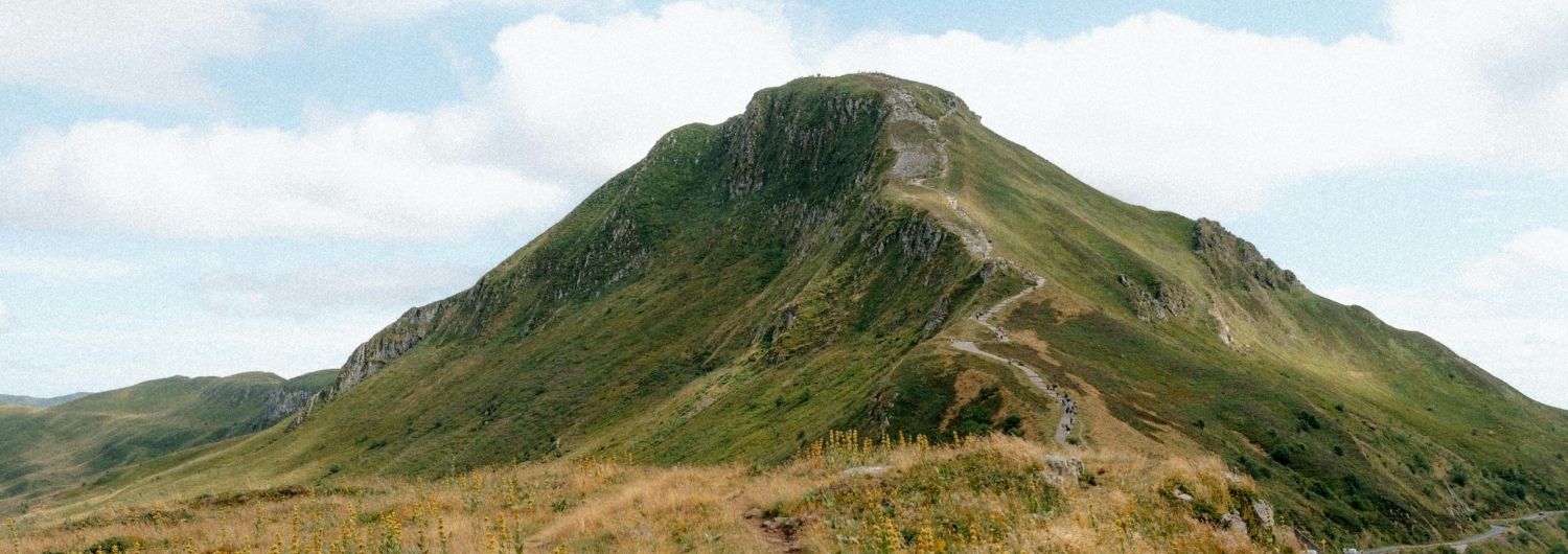 Die Puy-de-Dôme ist ein Vulkan vom Typ Lavadom im Zentralmassiv in der Region Auvergne. Mit einer Höhe von 1465 Metern ist er der höchste Punkt der Puys-Kette. Per Definition ist ein Vulkankuppel ist eine Formation, die durch die Ansammlung von zähflüssiger Lava entsteht, die nicht leicht abfließt und eine runde, massive Struktur entstehen lässt. Der Vulkan unterscheidet sich somit von explosiven Vulkanen durch seine regelmäßige Form und sein imposantes Relief.